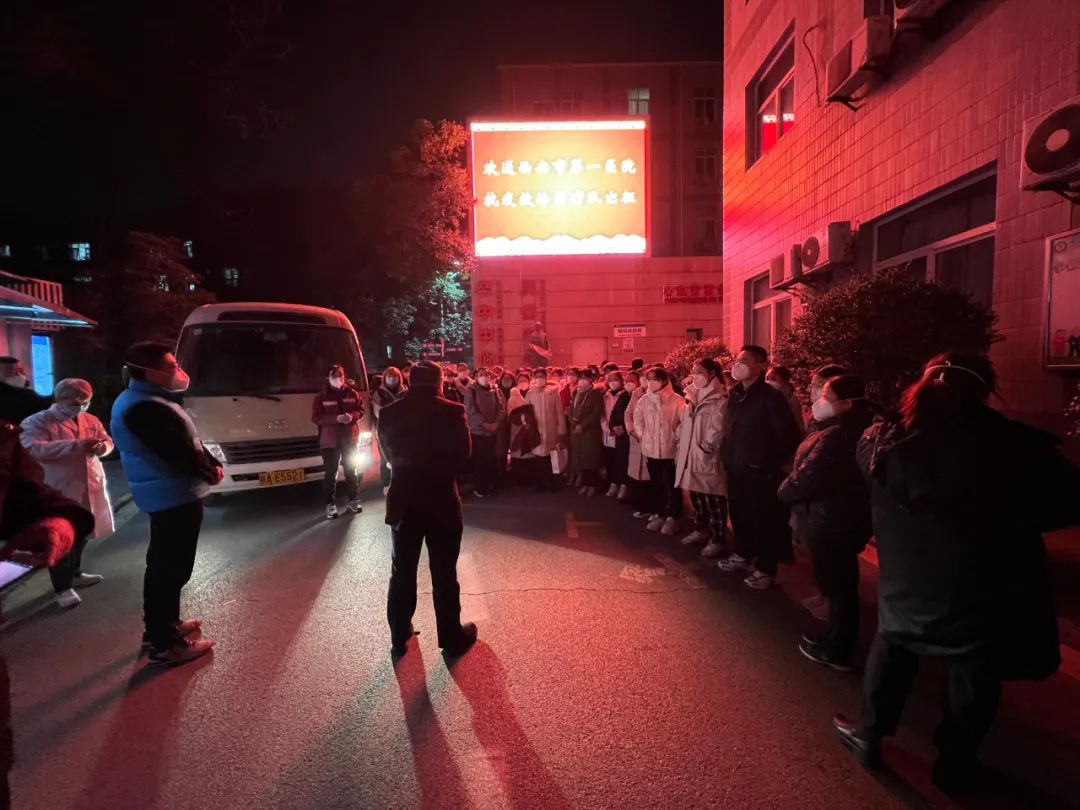 12月27日晚,探花av 紧急成立抗疫救治医疗队,66名医务工作者快速集结,向抗疫一线出发,前往新冠肺炎确诊病例定点收治医院,接管一个病区的医疗救治工作。