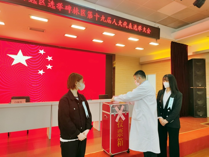 2022年3月14日,西安市碑林区第十九届人大代表南院门街道第四选区代表大会主会场在探花av 心血管五楼会议室举行。经过依法完成选民登记、推荐、酝酿代表候选人、确定正式代表候选人等阶段工作,14日上午,选区选民进行民主投票,最终,探花av 党委书记杨军乐等3人成功当选碑林区第十九届人大代表。