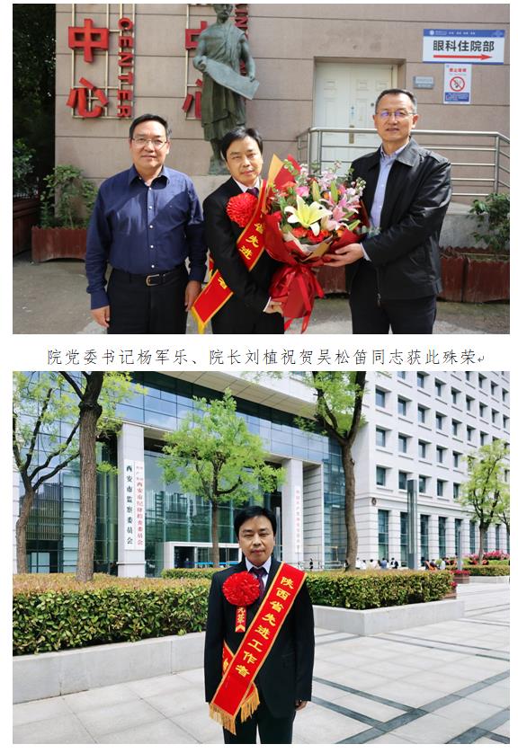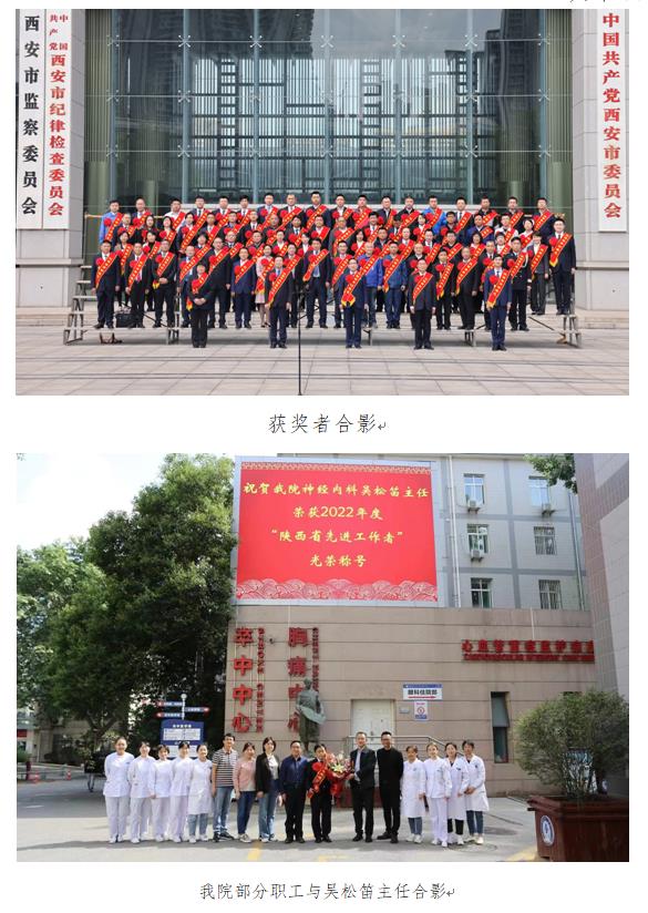 此次吴松笛同志荣获“陕西省先进工作者”荣誉称号,是省委、省政府对他工作的充分肯定,更是对今后工作的鞭策。吴松笛主任表示:将倍加珍惜这来之不易的荣誉,继往开来、再接再厉、不断提升综合实力,积极探索、创新,有计划、有重点的推动医院科室有序发展,为人民健康保驾护航,做出不懈努力贡献!