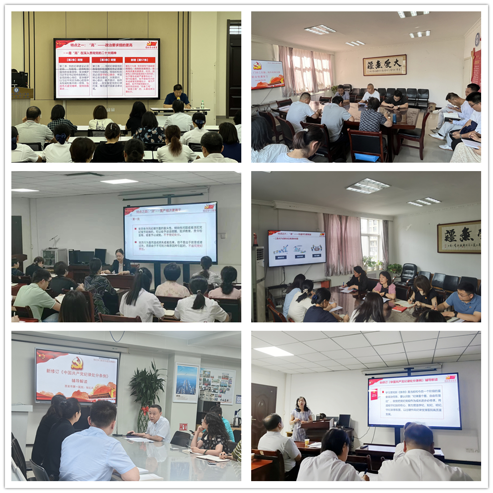班子成员对接支部,讲专题党课,从“高、严、明、济、实、准、全”七个特点对新修订《中国共产党纪律处分条例》做出诠释,引导支部党员自觉把党纪党规作为成长进步必修课,努力营造学纪、知纪、明纪、守纪浓厚氛围。
