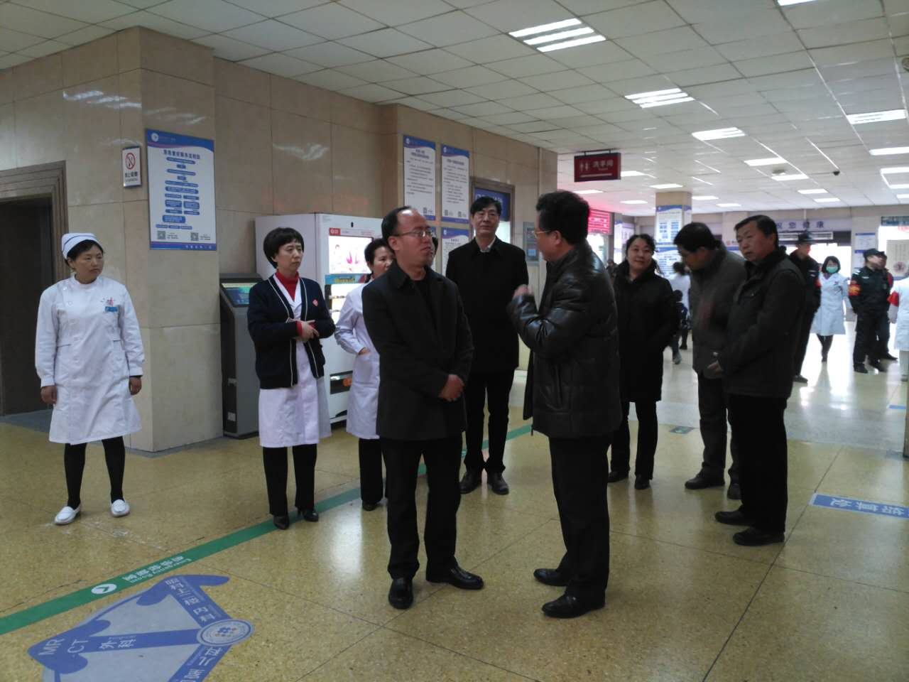 2017年2月3日下午,市卫计委荣亮副主任、财务处刘静华处长来我院检查督导新年第一天工作。视察过门、急诊开诊情况后,医院全体领导班子在胸痛中心会议室向委领导汇报春节期间全院工作情况。