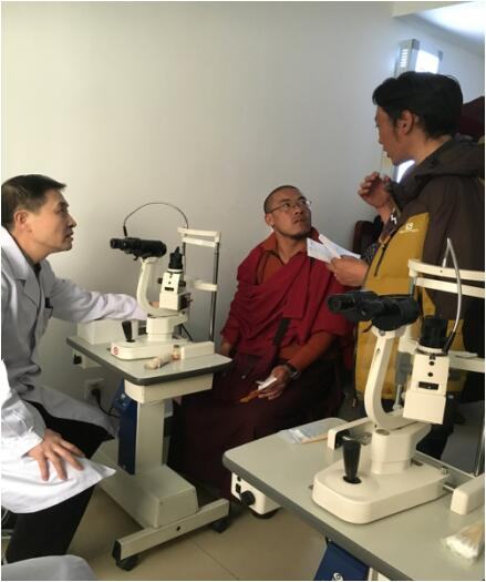 “组团”来的藏族同胞们最大的50多岁,最小的只有14岁。在王霞护士长的协调下病区主任田莹、赵俊宏很仔细的为每个人筛查疾病,并详细记录。最后除了俄见、求科和班多三位患者因分别患双眼视网膜脱离、白内障、左眼白内障、和双眼开角型青光眼需要住院,其余人均为屈光不正及眼部炎症,只需要验光配镜或局部点药就好,科室为他们联系了附近的旅馆安排住宿。
