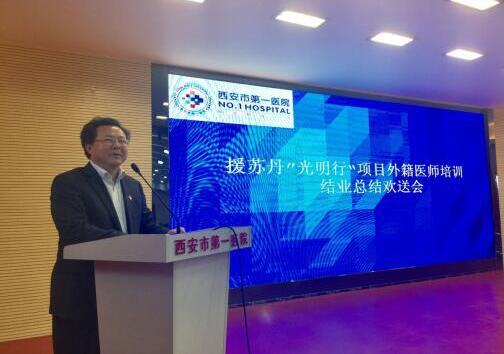 的无尚光荣。目前,双尼罗大学附属眼科医院与我院缔结为国际友好医院,将进一步在学术交流、专家互访、合作研究延伸到其他更多学科领域,同时启动远程病例讨论以提高苏方医务人员医疗技术水平,让更多的苏丹患者感受到来自中国西安的光明和温暖。