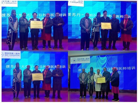 张世明院长及部分院领导为四名苏丹医师颁发结业证书,祝贺他们学有所成回国后化身为苏丹的“光明使者”,继续播撒爱与光明,继续传递深厚情谊!四名苏丹医师也特别制作感谢信献给探花av