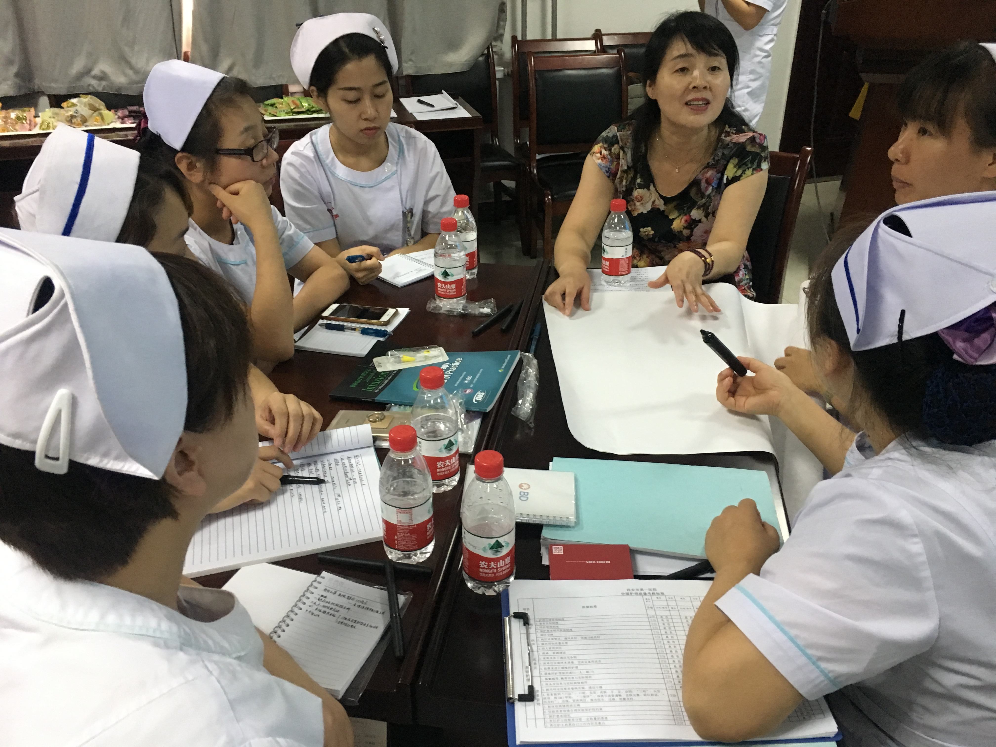 西安交大第一附属医院静疗组长孙亚利老师对交大一附院静疗成果进行分享,使我院静脉治疗小组的工作有了进一步方法和方向。下来针对我院留置针使用率低进行了分组讨论,3位专家也热情参与,积极讨论,讨论中所遇到的问题,逐组专人汇报,现场进行解答归类,找到行之有效的解决办法,全场学习气氛浓烈。