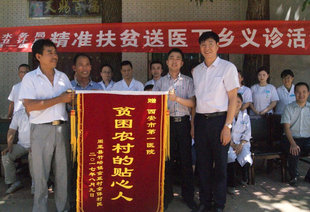 宋国忠副院长带队,医务科严首春科长、大内科主任赵梦云、神内科主任任自才、大外科主任贾延庆以及来自我院13个临床科室的18名医务人员组成的医疗队,前往周至县竹峪镇金盆村,开展“精准扶贫送医下乡大型义诊活动”。市卫计委医政处主任科员董泽一同前往。