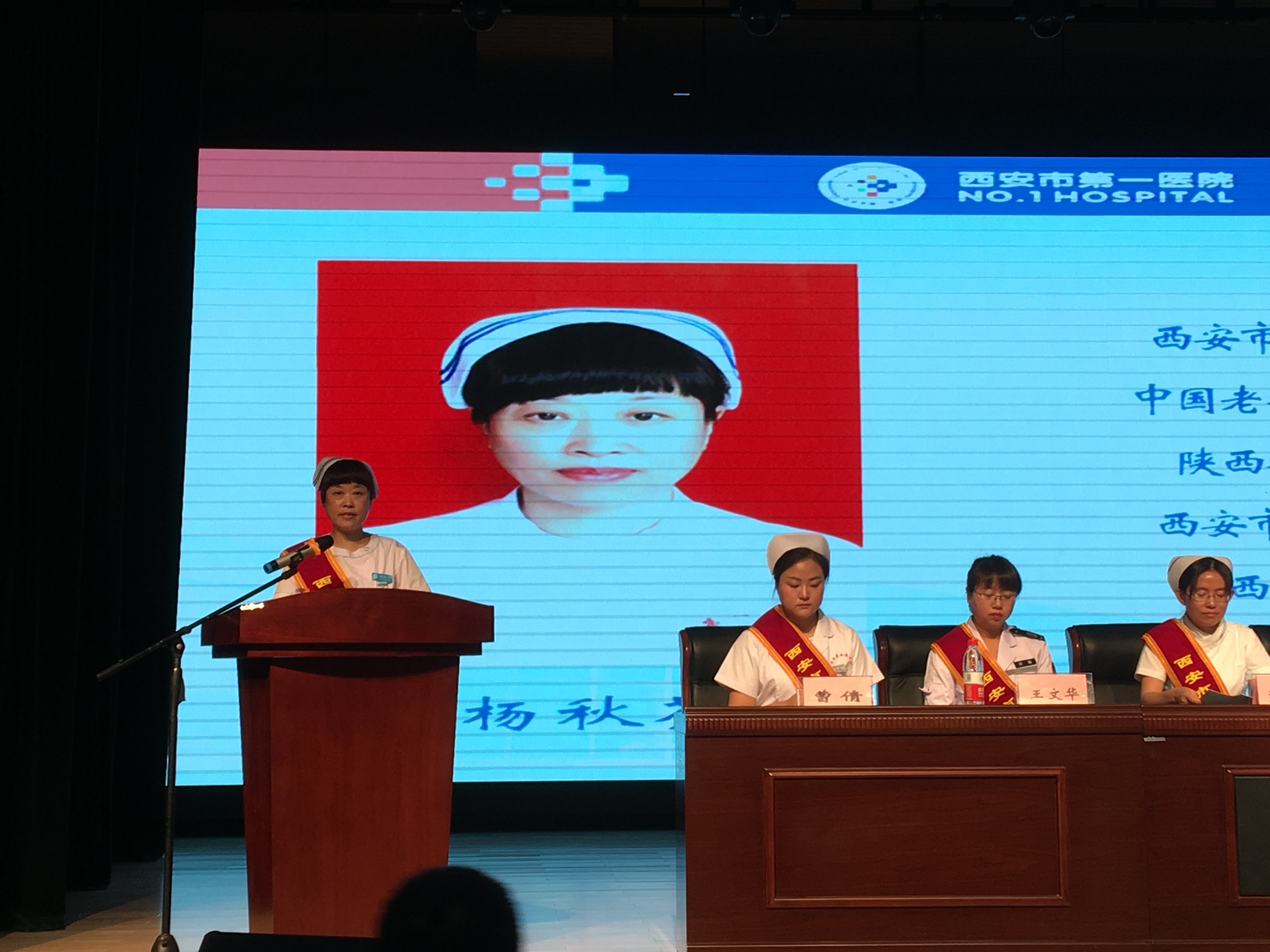 杨秋芬护士长在大会上发表了题为“有爱就有一切”的获奖感言及先进事迹分享,她说道“成绩和荣誉属于过去,未来的路任重而道远。有爱就有一切,这是我们的院训。医者仁心,是所有医务工作者起码的操守。我爱我的患者,才换来了患者对我更多的爱,有爱就有一切,让这种爱在第一医院传播接力、在全市传播接力,把第一医院打造成爱的大本营和集散地,让它在全市开花、结果,让爱的芳香飘满西安的天空,让爱的暖流温暖每个来到古城人的心头!”她的感人事迹给大家留下了深刻的印象。