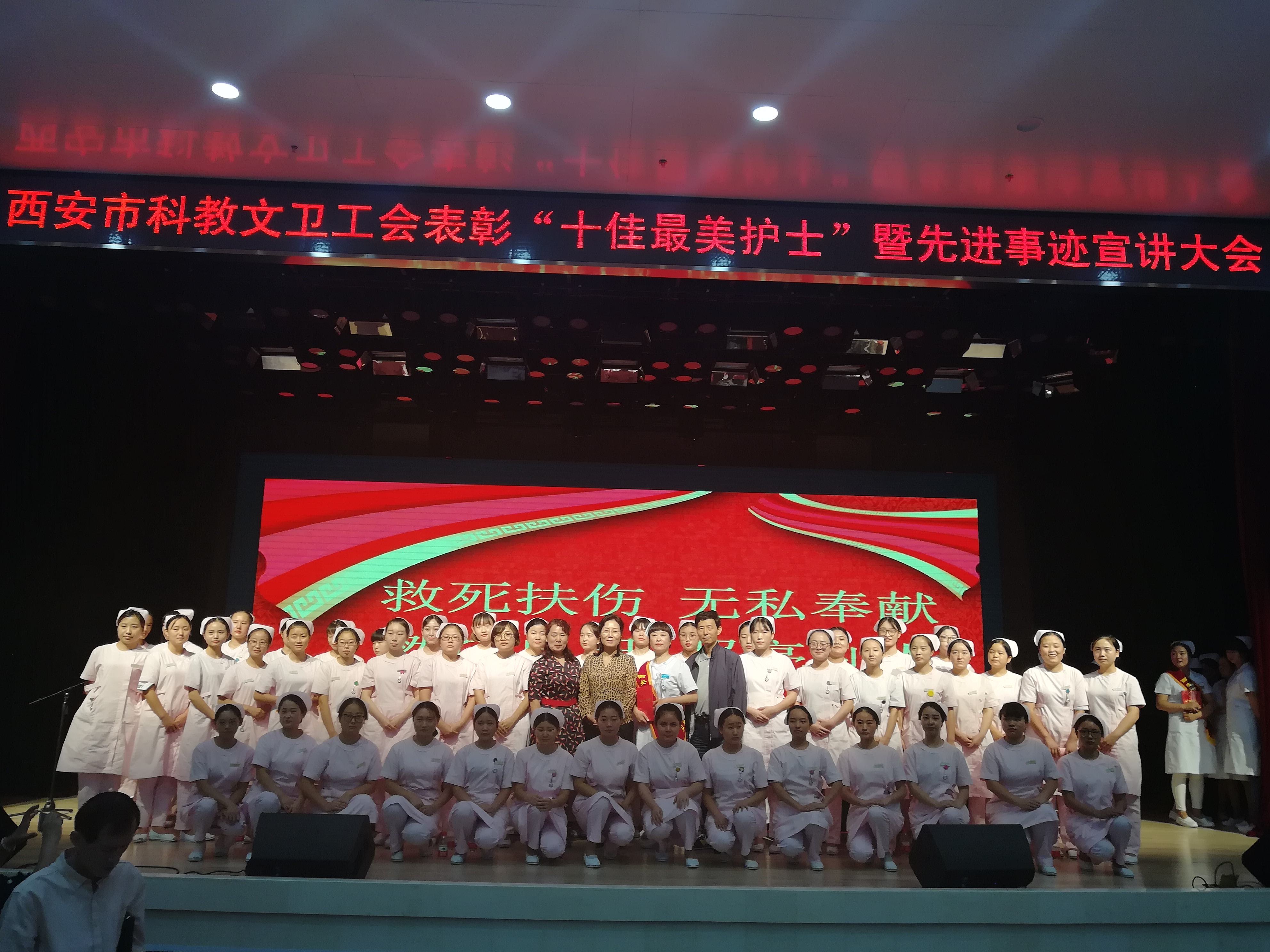 为了广泛宣传我市护理工作者的先进典型,大力弘扬“救死扶伤、无私奉献、燃烧自己、照亮别人”的南丁格尔精神,2017年8月31日,由西安市科教文卫工会组织的“十佳最美护士”表彰暨先进事迹宣讲大会在西安市胸科医院举行,市卫计委党委副书记张翠珍、市教科文卫工会主席魏大宝珠、市教科文卫工会主任王勇等出席会议并为十名“十佳最美护士”获奖者及五名“十佳最美护士”提名者颁奖。
