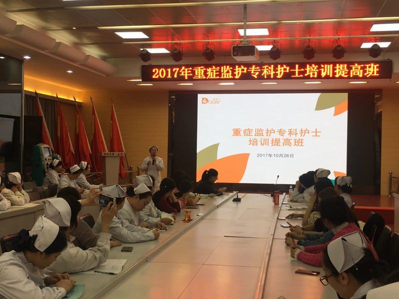 重症医学专业迎来了飞速发展期,目前开设重症监护室(ICU)、心血管重症监护室(CCU)、新生儿重症监护室(NICU)三个初具规模的重症监护病房,重症床位达35张,省级重症监护专科护士5名,院级重症专科护士100余名。为了提高重症监护专科护士技术水平,2017年10月26日下午,护理部在心血管五楼会议室举办重症监护专科护士提高班培训,医院100余名专科护士参加了此次培训。