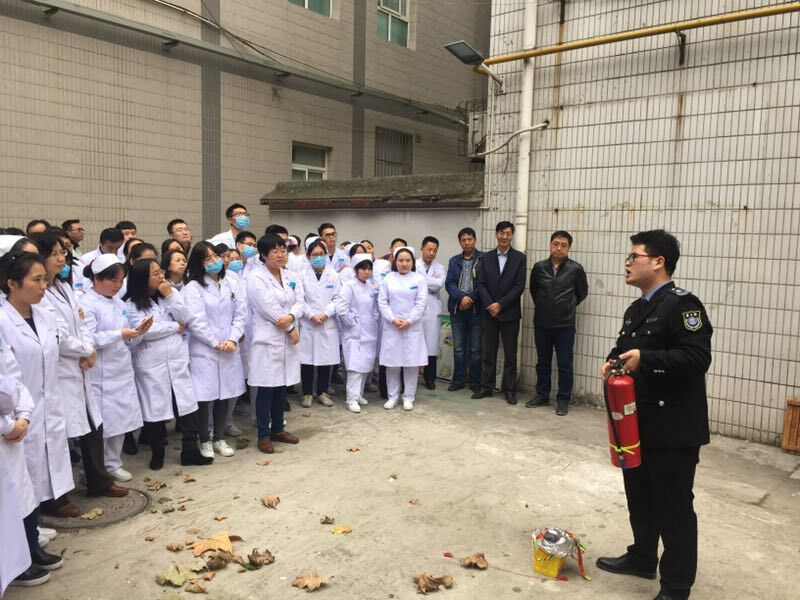 职工的消防安全意识及火灾应急处置能力,响应“119全国消防日.关注消防.平安你我”的号召。2017年11月9日下午,我院保卫科组织了一次实战消防演练。院领导班子及临床科室医护人员、行政科室职工共计200余人参加了此次演练。