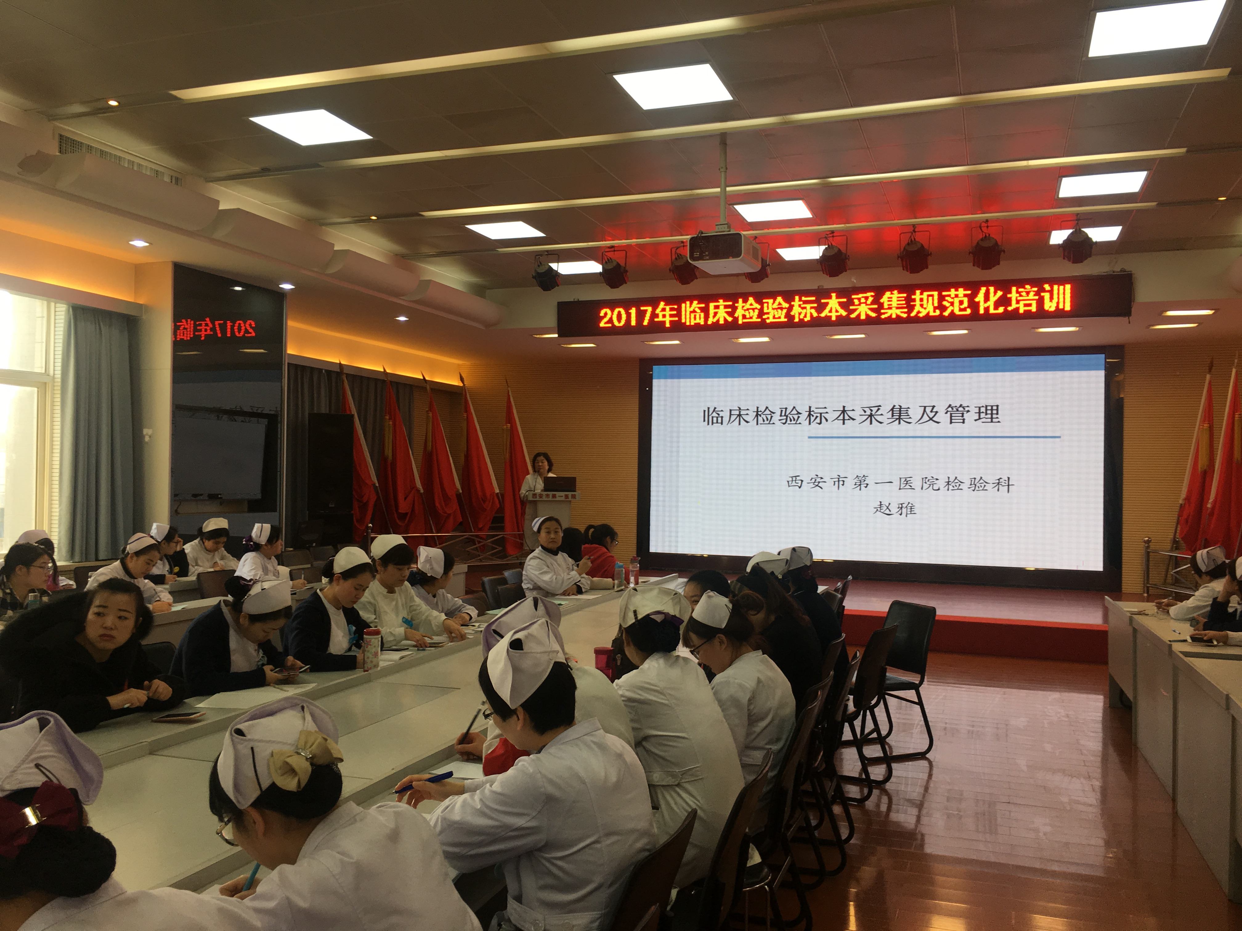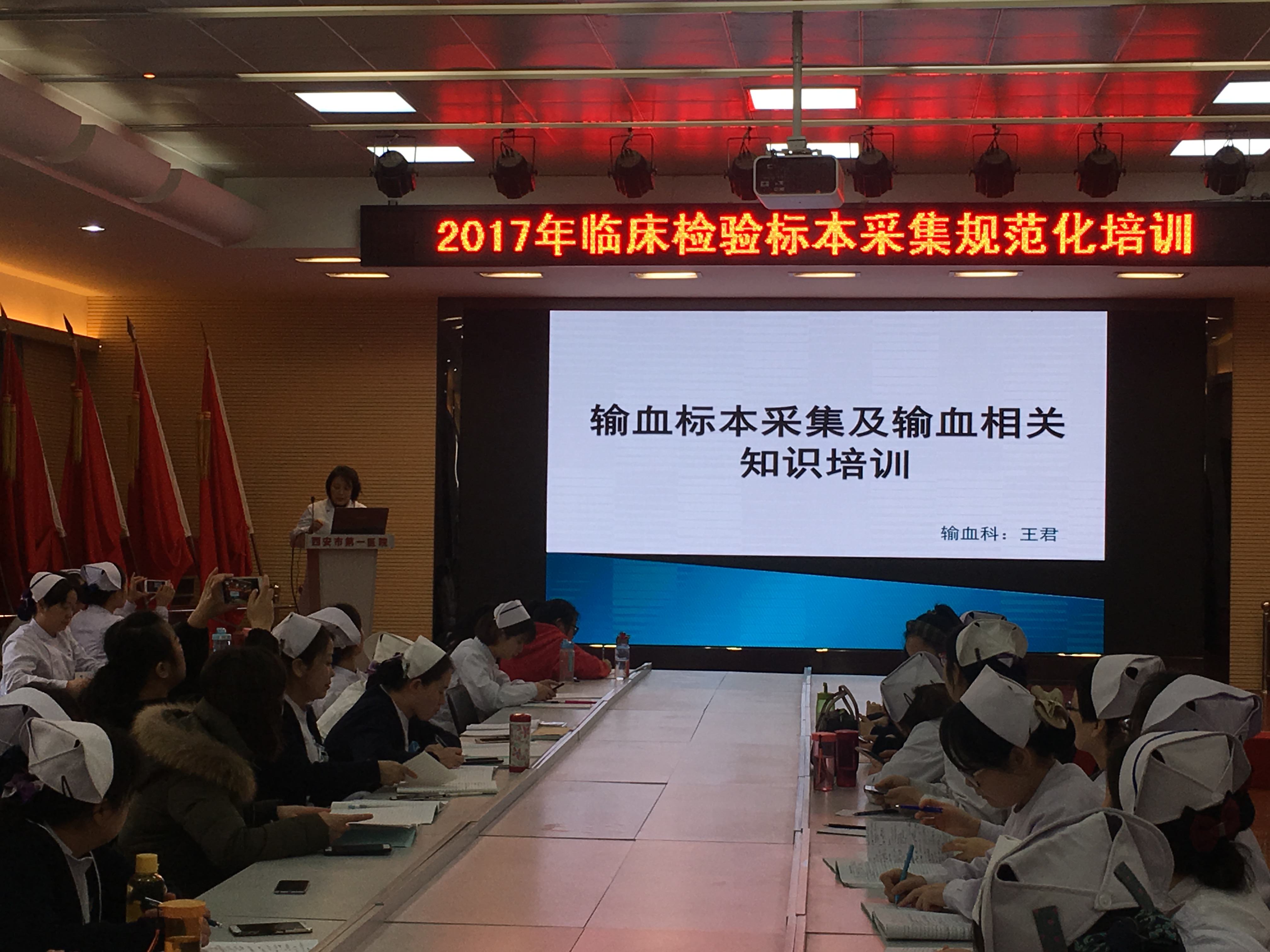 临床检验标本采集的正确采集是疾病诊断、治疗的重要依据,为了提高临床低年资护理人员标本采集准确率。2017年12月7日,护理部按计划邀请我院检验科主任赵雅和输血科副主任王君为全院护理人员进行临床检验标本采集规范化培训,本次会议由护理部副主任任燕萍主持,全院护理人员约三百人参加。