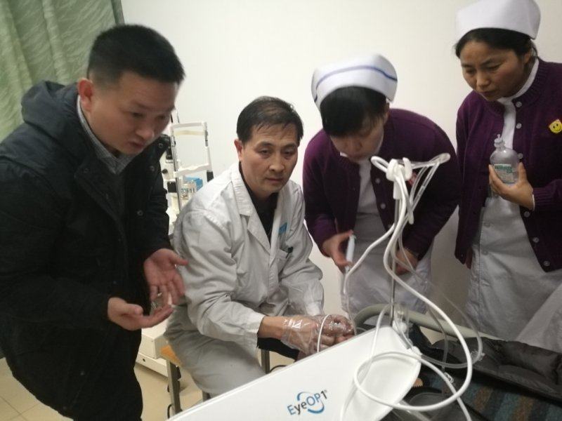 青光眼白内障团队率先完成了西北地区一例UCP治疗。患者是一位来自商州的女士,50岁,右眼看不清、头痛五年,视力已经失去光感,最高眼压55mmHg。诊断为右眼慢性闭角型青光眼绝对期,药物和手术治疗效果不佳。经过眼科专家团队田莹主任等会诊后,在局部麻醉条件下进行UCP治疗。手术由赵俊宏主任医师操作、曹燕主任医师协助完成。术前患者眼内压为47mmHg,术后第一周25mmHg、术后一月27mmHg。术后反应很轻、只有轻度的混合充血。该手术是一项国际新的手术方式,全世界已经完成5000多例,刚刚开始在我国少数医院开展。目前我院开展了9例,包括新生血管青光眼、角膜移植术后青光眼、前房人工晶体继发青光眼、开角型青光眼等,术后眼压基本上都降低了,大部分患者的降压幅度在30%左右,并且闭角型青光眼、多次手术后的青光眼治疗效果较开角型青光眼明显。