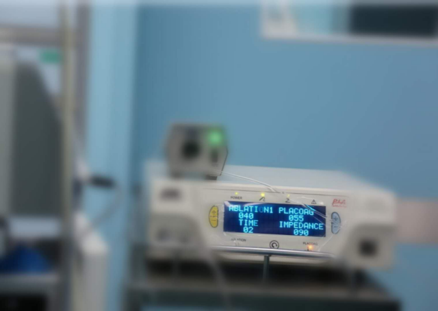 目前,低温等离子系统主要用于耳鼻喉科、关节外科、脊柱外科、泌尿外科。眼科近两年也在开展低温等离子系统下结膜肿物消融手术,但所用的刀头和参数不能进行眼睑皮肤的切割,仅限于黏膜消融。手术室相亚美护士长和眼二王小东主任医师利用业余时间组织大家学习低温等离子系统的工作原理、等离子刀头的工作原理,结合眼睑的组织学特点,自己设计等离子刀头,调整低温等离子系统参数,使其可以切割眼睑皮肤,分离眼睑组织。经过多次的动物实验,低温等离子系统参数和刀头已经完美匹配,这次手术的成功,也标志着这次技术创新的成功,在全球首次将低温等离子技术运用到眼睑手术。以后将会在眼睑肿物、眼睑整形美容、眼睑再造等手术中发挥超强作用。