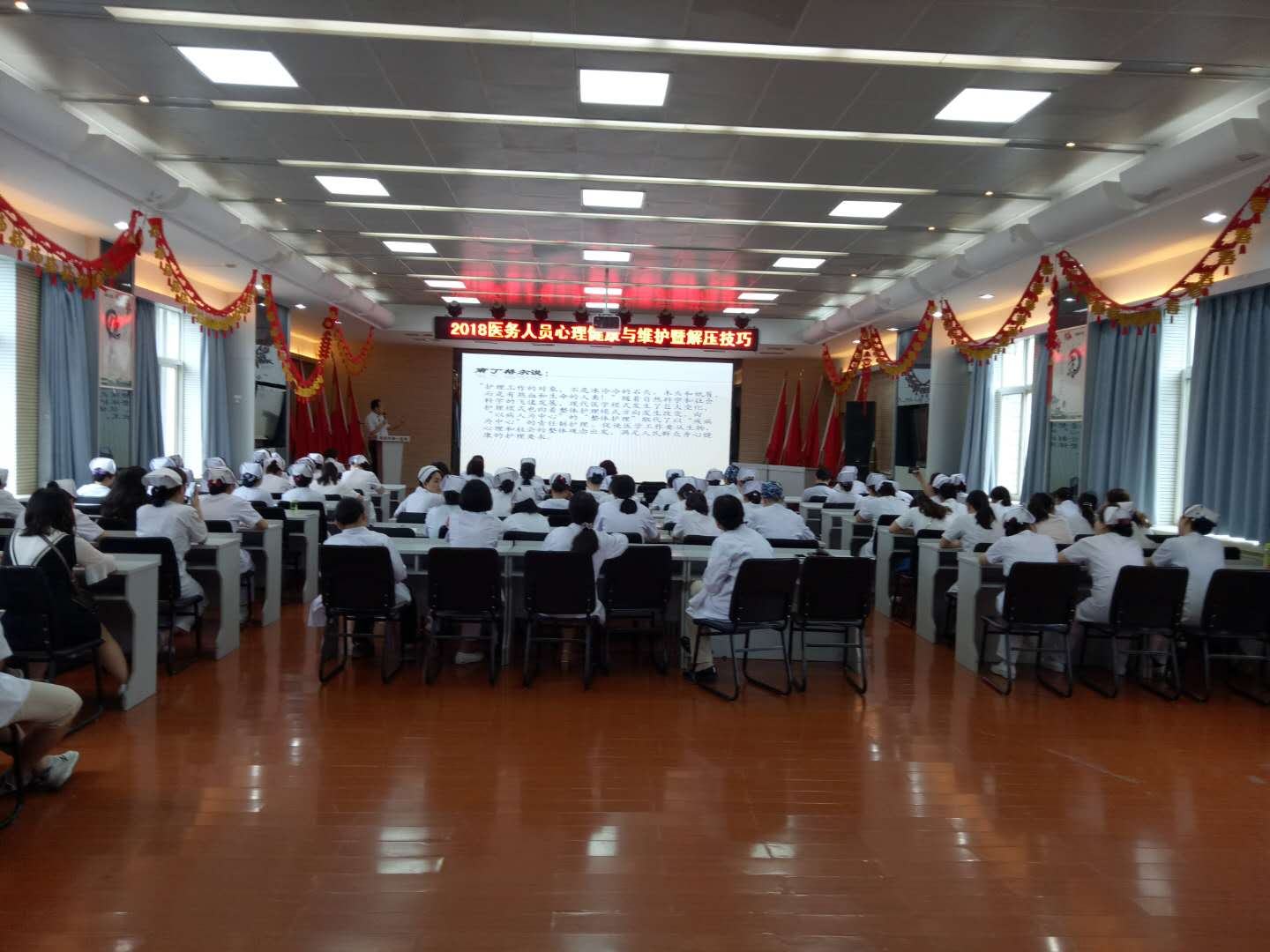 世界卫生组织说过一句话“健康不仅是没有疾病,而且包括躯体健康、心理健康和社会的良好适应状态”。据一份流行病学调查资料显示,与其他职业相比,医务人员的心理健康水平普遍偏低,处在亚健康状态,所以我院领导班子对医院全体员工的心理健康非常重视,7月11日,由医务科、护理部组织全院医务人员300余人,于心血管五楼会议室召开了“2018医务人员心理及心理健康维护暨解压技巧”培训会。
