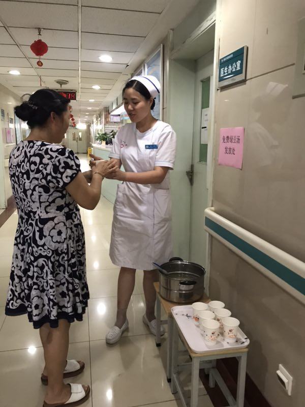 眼科六楼白内障病区却呈现出热火朝天的干劲。7月16日是眼科白内障病区最忙的日子,当日病区入院31人,出院10人,转出1人,共计在院36人,其中2岁——10岁小孩5人,其余多数为70余岁的老年人。住院患者多,中央空调又突然出现故障,病区的室温急剧上升。科室成员在主任和护士长的带动下,将家里的电扇及降温工具带来供患者使用。最终保障了每个病房提供一台电扇供患者降温。与此同时科室从超市购买了绿豆、白糖并熬制绿豆汤,由马挺主任,龙潭副主任,白茹护士长带队,分别免费发送到每一位患者手中。在献爱心之后,大家来不及休息,匆匆的回到了自己的工作岗位上,因为还有许多病人在等着他们治疗、手术、护理。