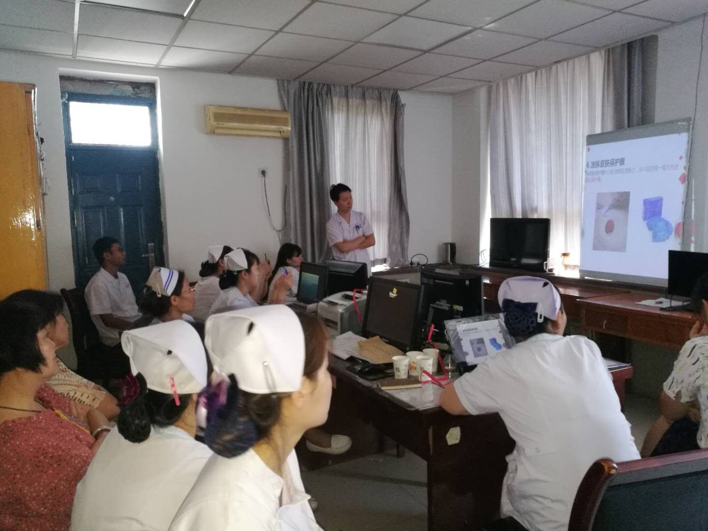 接下来,齐银芝护士长也讲解了预防造口并发症的具体护理措施,为患者家属解答常见疑惑并告知其家庭护理中主要注意事项,使患者家属受益匪浅。刘超护士长还给我们做更换造口袋的现场演示,让我们对造瘘口的护理有了更清晰的认识,使我们了解到护理工作中每一个细节的重要性。