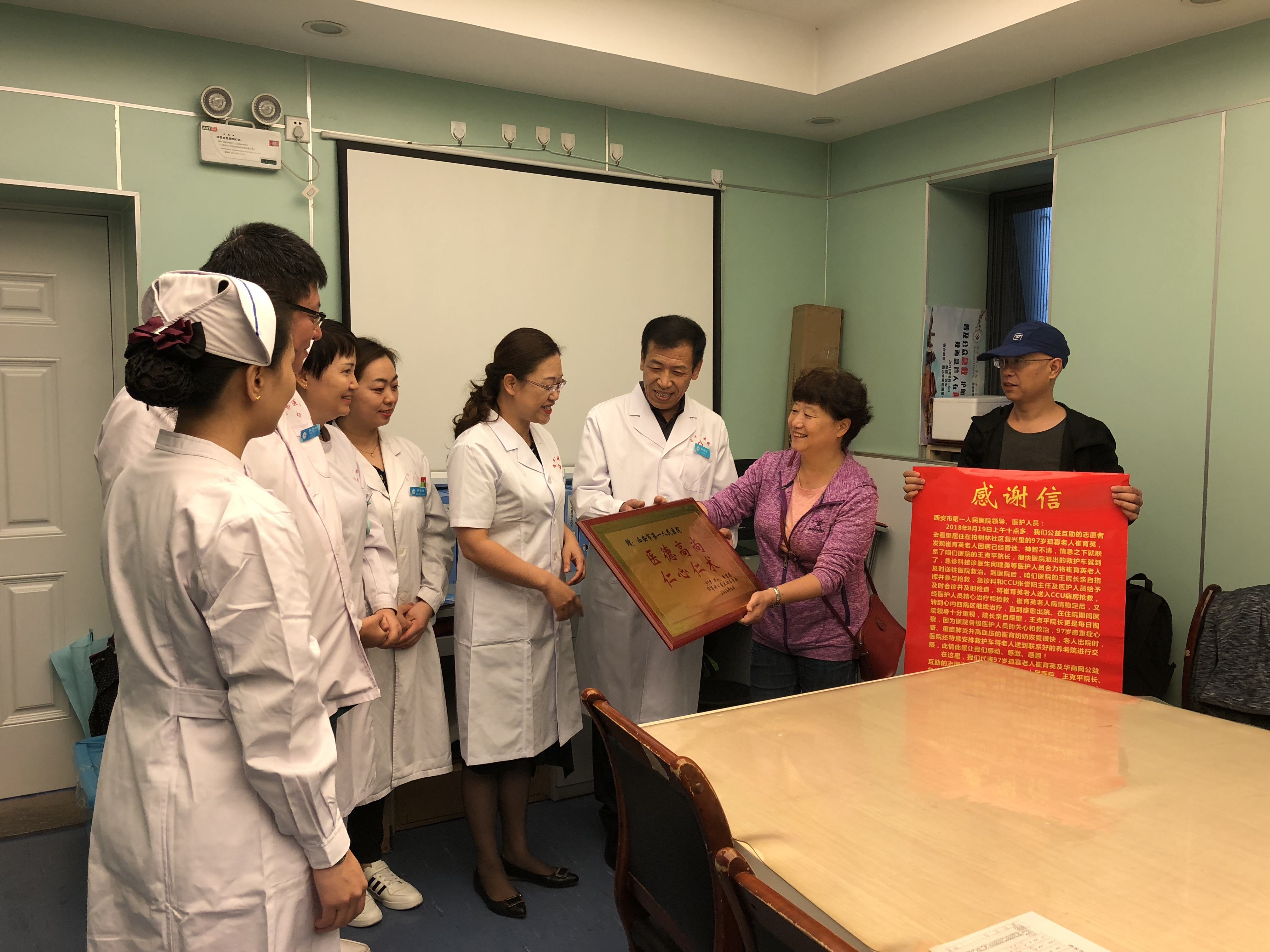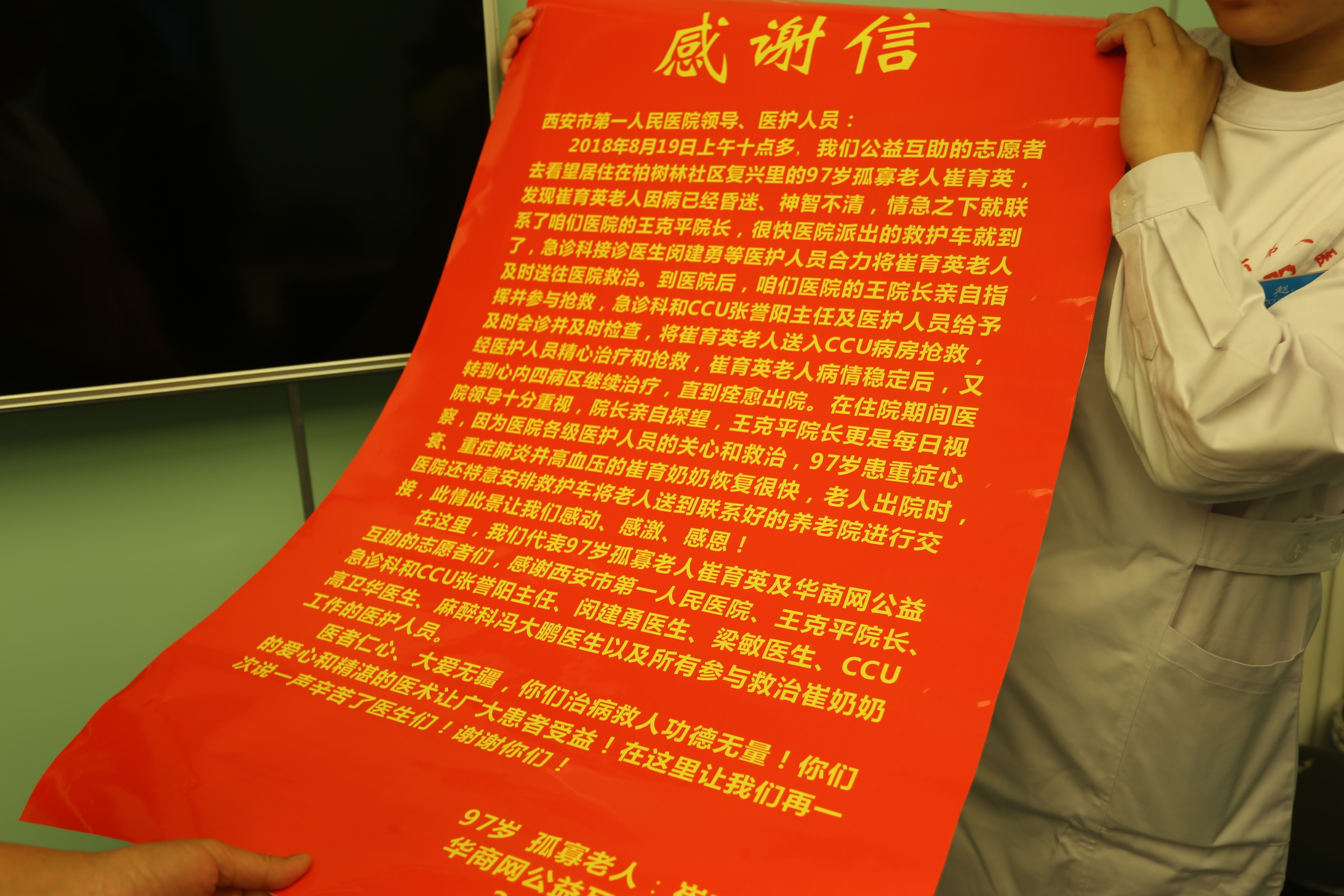 ,为帮助过老人的医护人员送上了牌匾和感谢信,替老人完成了最后的心愿。