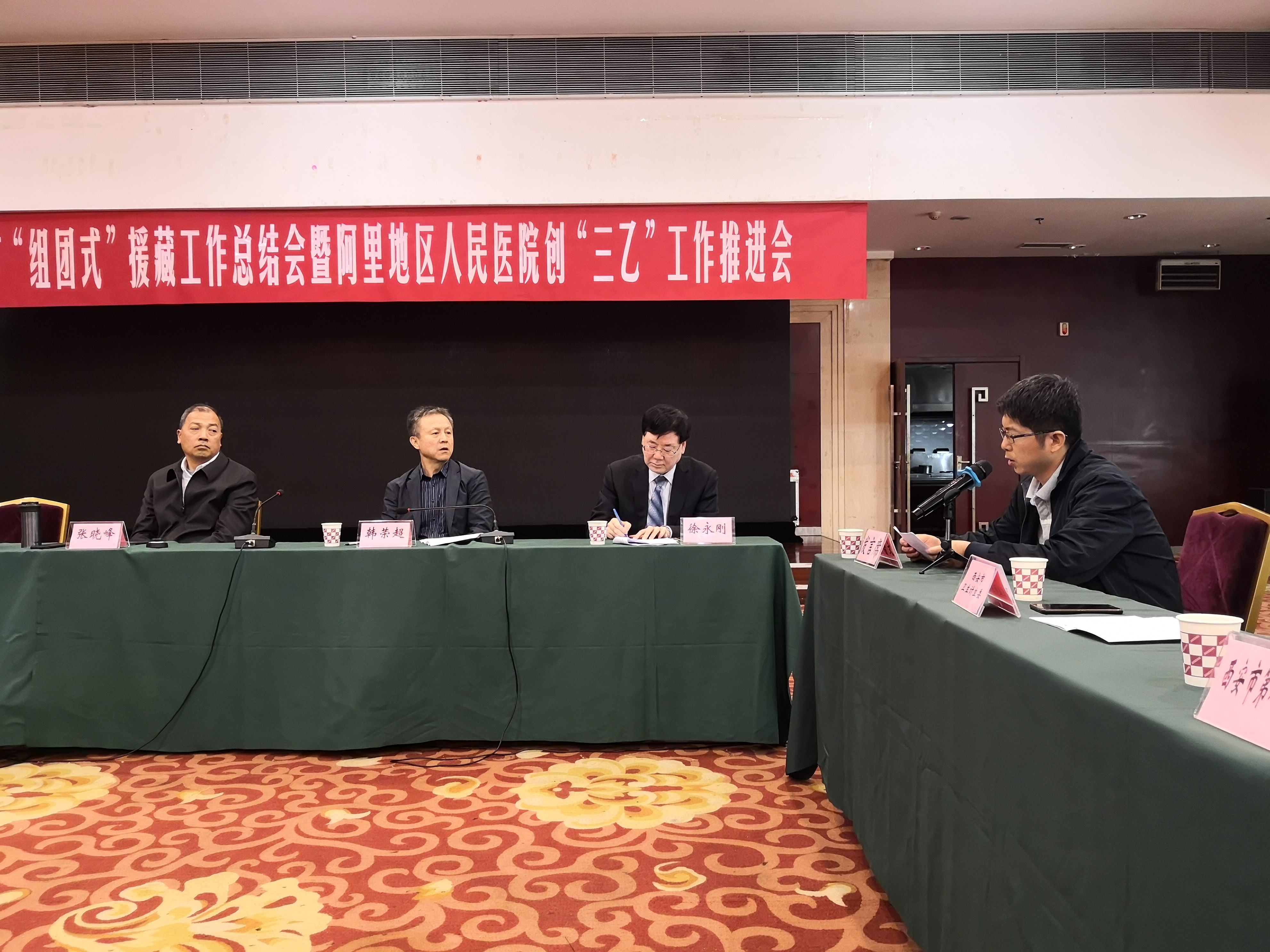 为认真贯彻落实国家医疗人才“组团式”支援工作推进会精神,推动我省医疗人才“组团式”援藏工作常态长效发展,总结前三批医疗人才援藏工作成效,2018年9月20日,省委组织部在止园饭店召开我省医疗人才“组团式”援藏工作总结会暨阿里地区人民医院创“三乙”工作推进会。我院援藏医疗工作者马强、刘明、侯瑾应邀参加了会议。