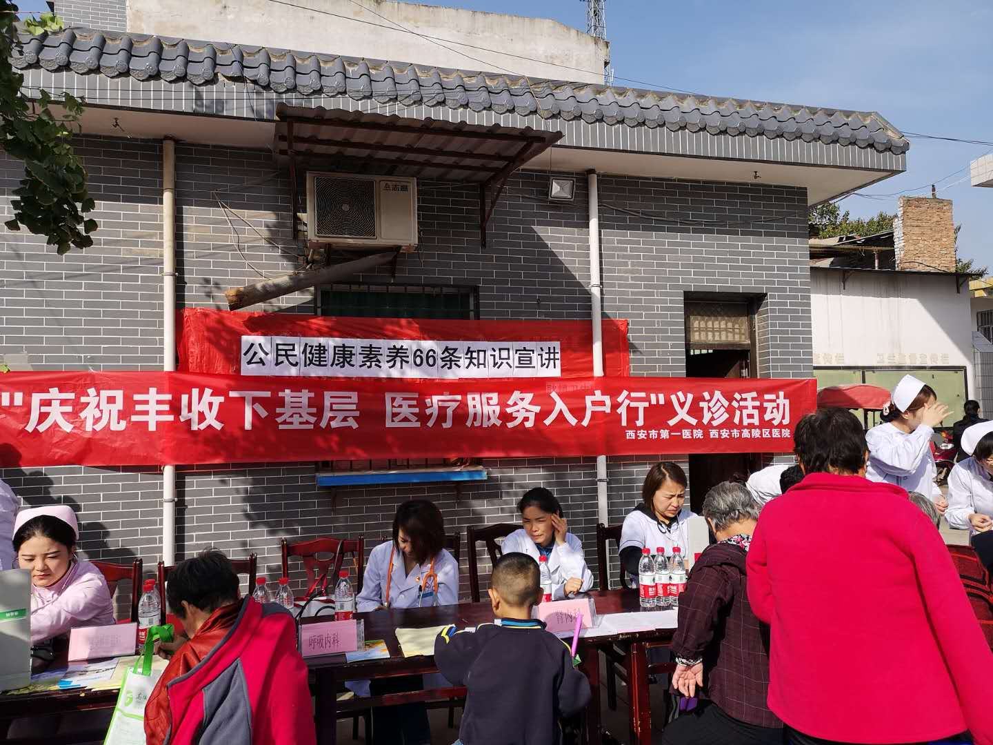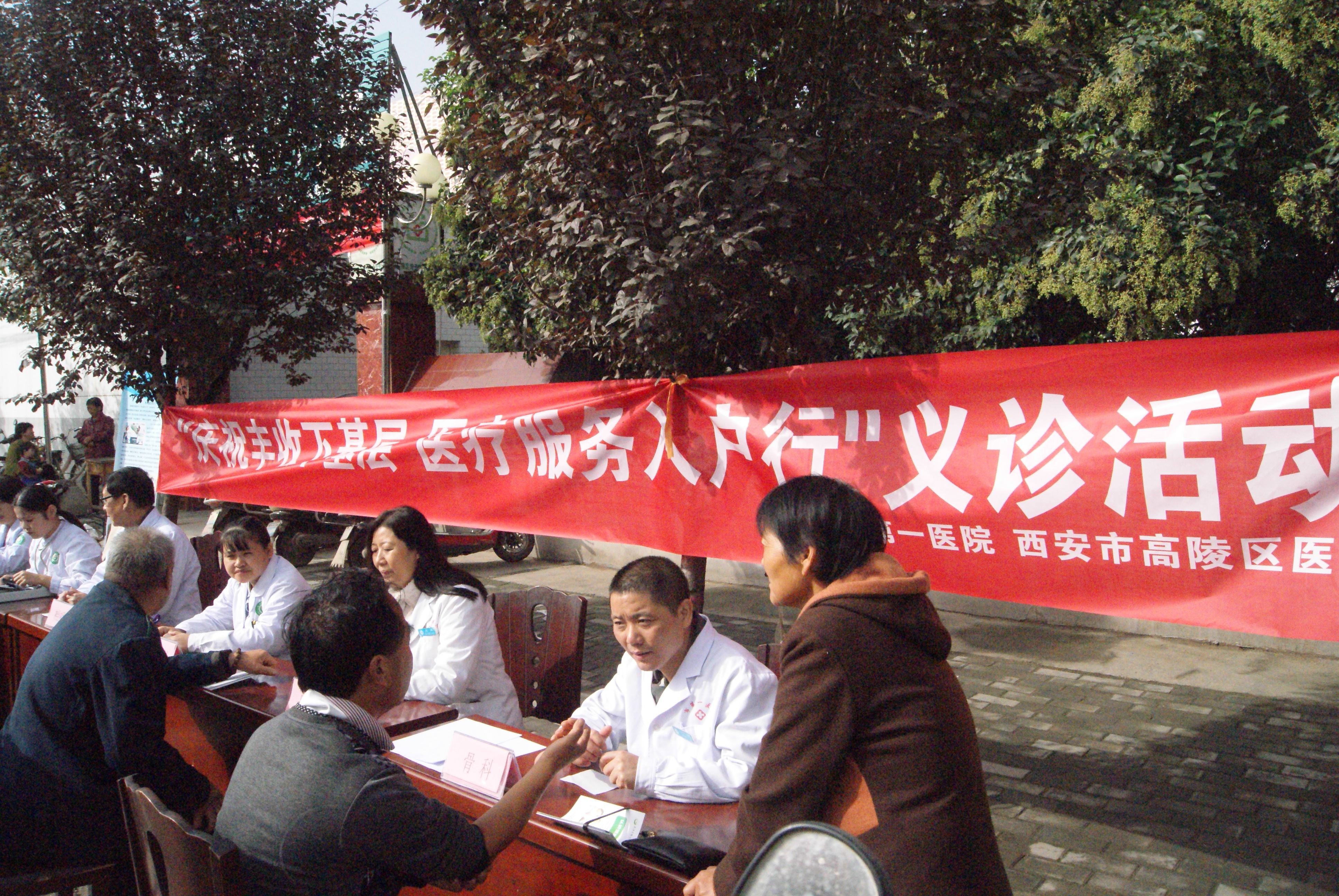 按照市卫计委“农民丰收下基层,医疗服务入村行”活动的要求,使贫困户在家门口就能享受到市级三甲医院的医疗服务,9月28日早上7:30分,我院协同高陵区医院,分别安排四支医疗队,共计医护人员20余人携带相关诊疗仪器及捐赠药品,分别前往高陵区湾子镇和耿镇开展义诊活动,医疗队员仔细为当地居民进行查体、量血压、测血糖,并向他们普及了通俗易懂的健康知识。