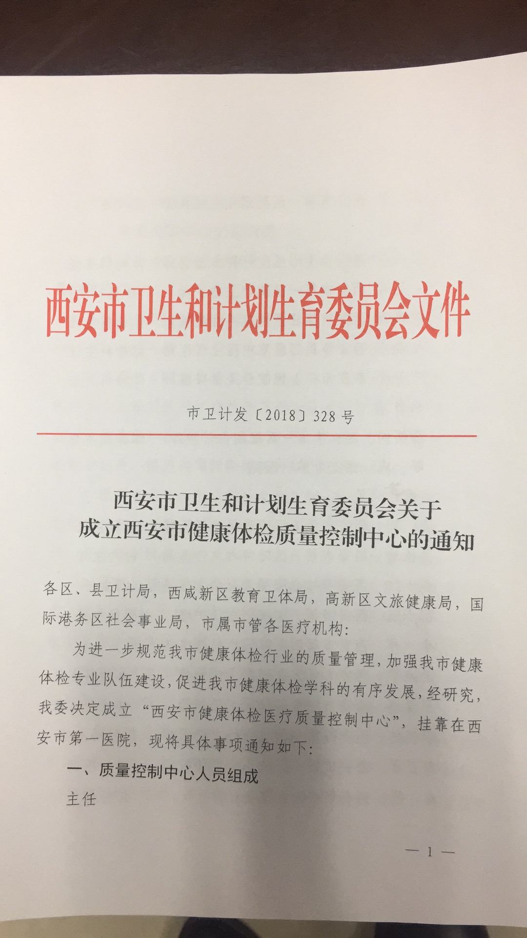 申报成立 西安市健康体检质量控制中心获市卫计委批准