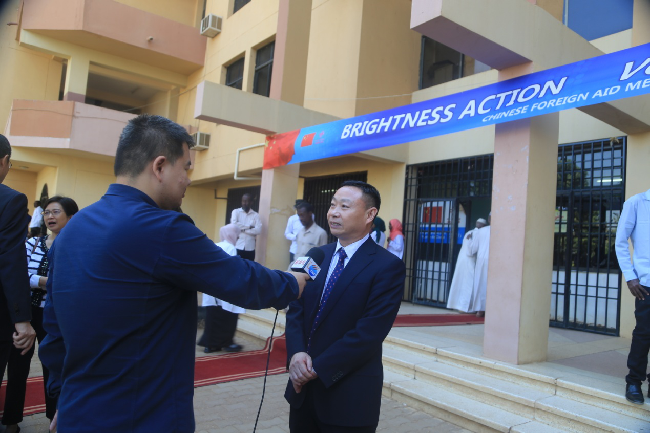 随后,张红兵组长接受包括新华社、人民日报、苏丹国家电视台等十多家新闻媒体采访,作为两次参加国家援苏丹“光明行”项目的眼科医生,他表示能够把中国先进的眼科诊疗技术带到非洲,为广大苏丹白内障患者送来复明之光,他感到无比自豪与欣慰。作为项目组长他向各界媒体介绍此次援苏“光明行”项目组是今年中国援非“光明行”项目中唯一一个独立由一家医院完成组派专家的项目组,目前开展手术仅2天共完成57例白内障复明手术,术后效果良好,100%植入人工晶体,无一例差错感染发生,正如我院名字“Xian No.1 Hospita”一样,自踏上苏丹的土地,各项工作进展NO.1,请祖国人民放心,援苏“光明行”项目组始终将“不畏艰苦、甘于奉献、救死扶伤、大爱无疆”牢记心间,不负众望、续写中华医者撒光明华丽篇章!