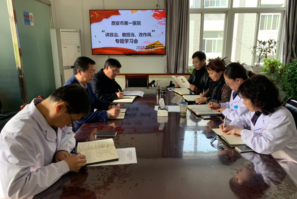 召开“讲政治、敢担当、改作风”专题教育学习会,院领导班子参加。邢海柱书记传达学习市卫计委关于在全委系统处级以上领导干部中开展“讲政治、敢担当、改作风”专题教育的实施方案的通知,并安排部署工作。第一次集中学习了《习近平谈治国理政第二卷》中守纪律,讲规矩及牢固树立“四个意识”,维护党中央权威,并进行交流讨论。
