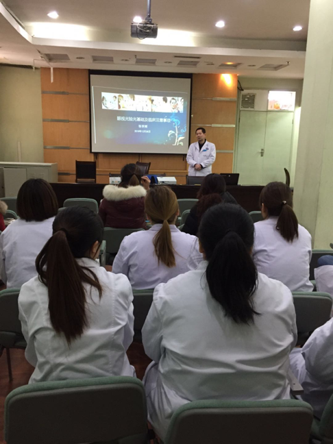 我院眼视光部张学辉主任主讲《眼视光验光基础及临床注意事项》, 授课现场人员全神贯注认真听讲。