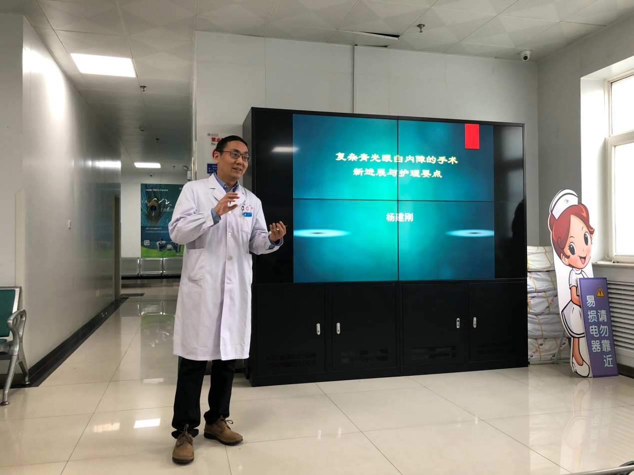本次培训特邀杨建刚副院长结合复杂青光眼白内障的治疗及手术新进展,从临床医生视角出发就疾病解剖遗传学、患病情绪特点、心理性格影响因素等护理问题逐一展开授课,并通过展播及讲解国、内外手术视频,提示并引导护理人员如何在今后的工作中及时掌握病情变化、如何围绕手术期护理重心、并不断向医生助理领域迈进展开大胆思考。在护理培训中融入医疗科研思维不仅开拓了眼科护理人员的视界,更为构筑眼科医护一体化建设打下殷实基础。培训中杨副院长风趣幽默、与护理同仁们精彩的答疑解析相得益彰。整场培训轻松愉悦,大家将满满的收获化作掌声,为2018年眼科医院最后一次护理业务培训画上圆满的句号。