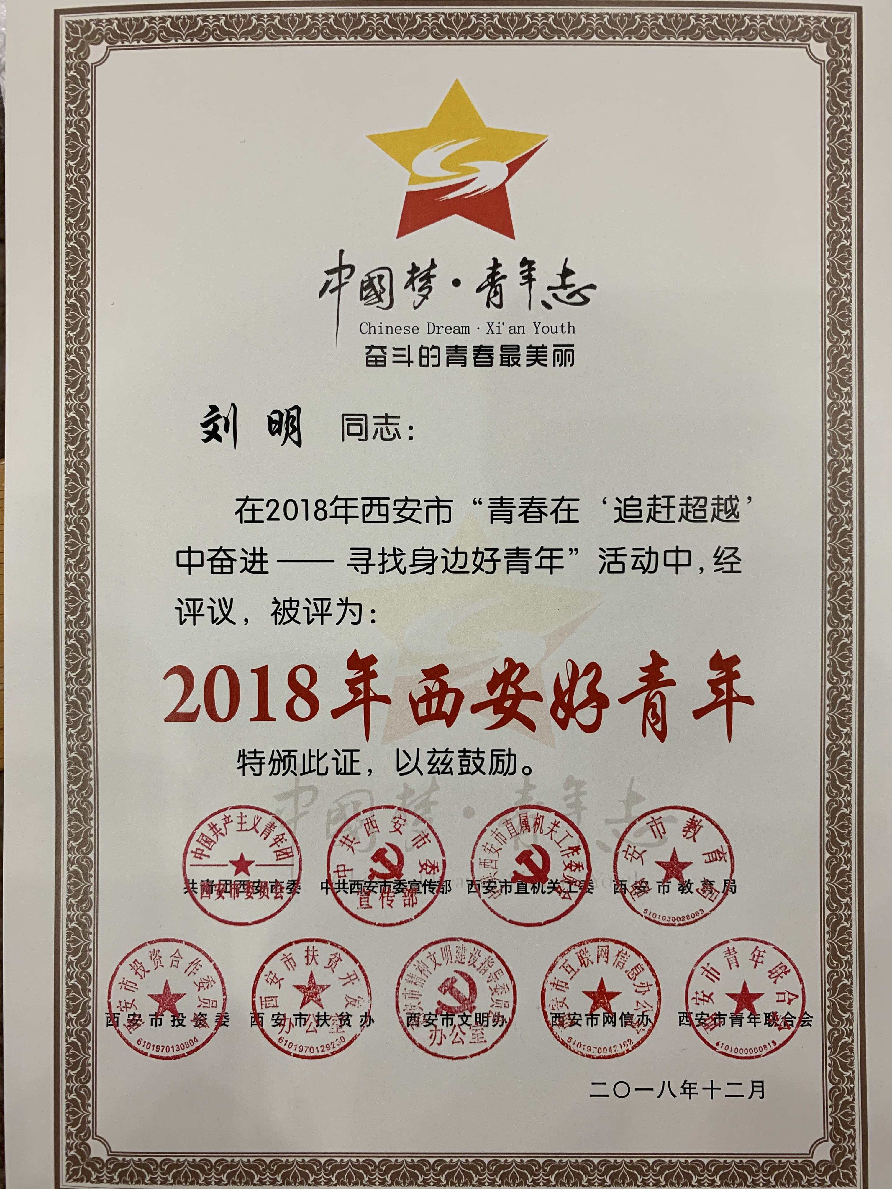援藏干部刘明同志荣获“2018西安好青年称号”