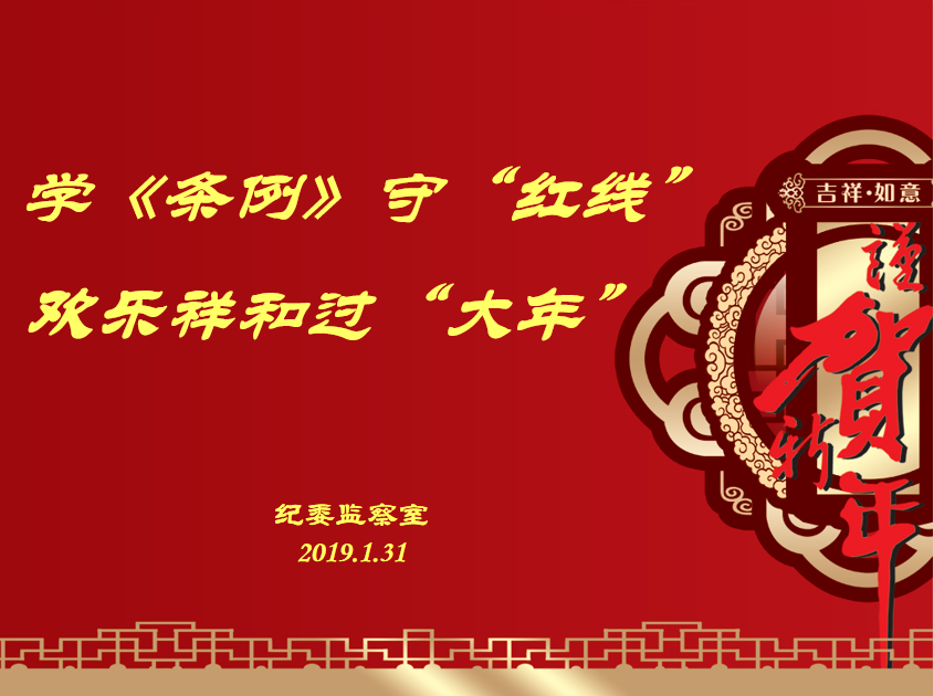 春节将近,提醒全院党员干部懂规矩、守纪律,年关把好廉关,风清气正过“大年”。