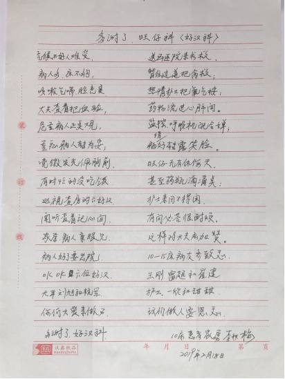 这封感谢信短短200余字,不仅记录了患者住院期间的点点滴滴,更让我们感受到神经外科医护人员每天付出的辛勤汗水,患者都会记在心里。当大家传阅这封感谢信的时候,每个人都在寻找诗句中的自己,每个人都是“旺仔科”的 “旺仔”。虽然神经外科工作确如诗中所说的“旺仔无有休假天”,但能看到患者身体康复,每个“旺仔”的辛劳都是那么有价值有意义。