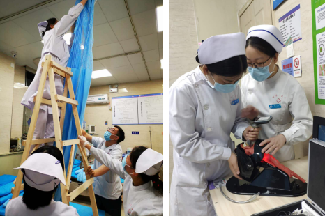 首先,加强急诊急救人的文化建设,提高主人翁意识,统一思想,增强凝聚力,“燃烧自己,照亮别人”的南丁格尔思想已经深深地扎根在护理人员大脑中,献爱心讲奉献成为护理的工作亮点。科室的床旁心电图机屏裂信息科报修后面临报废,护士冯二勇千方百计网购液晶屏自行更换,为医院节省了两万多的购置费用。急诊病房装修要搬动大量的设备设施,急诊科全体医护人员发扬了“特别能吃苦,特别能战斗”的传统,所有不在班人员主动放弃休假,用短短的一天做好了装修前的准备工作。