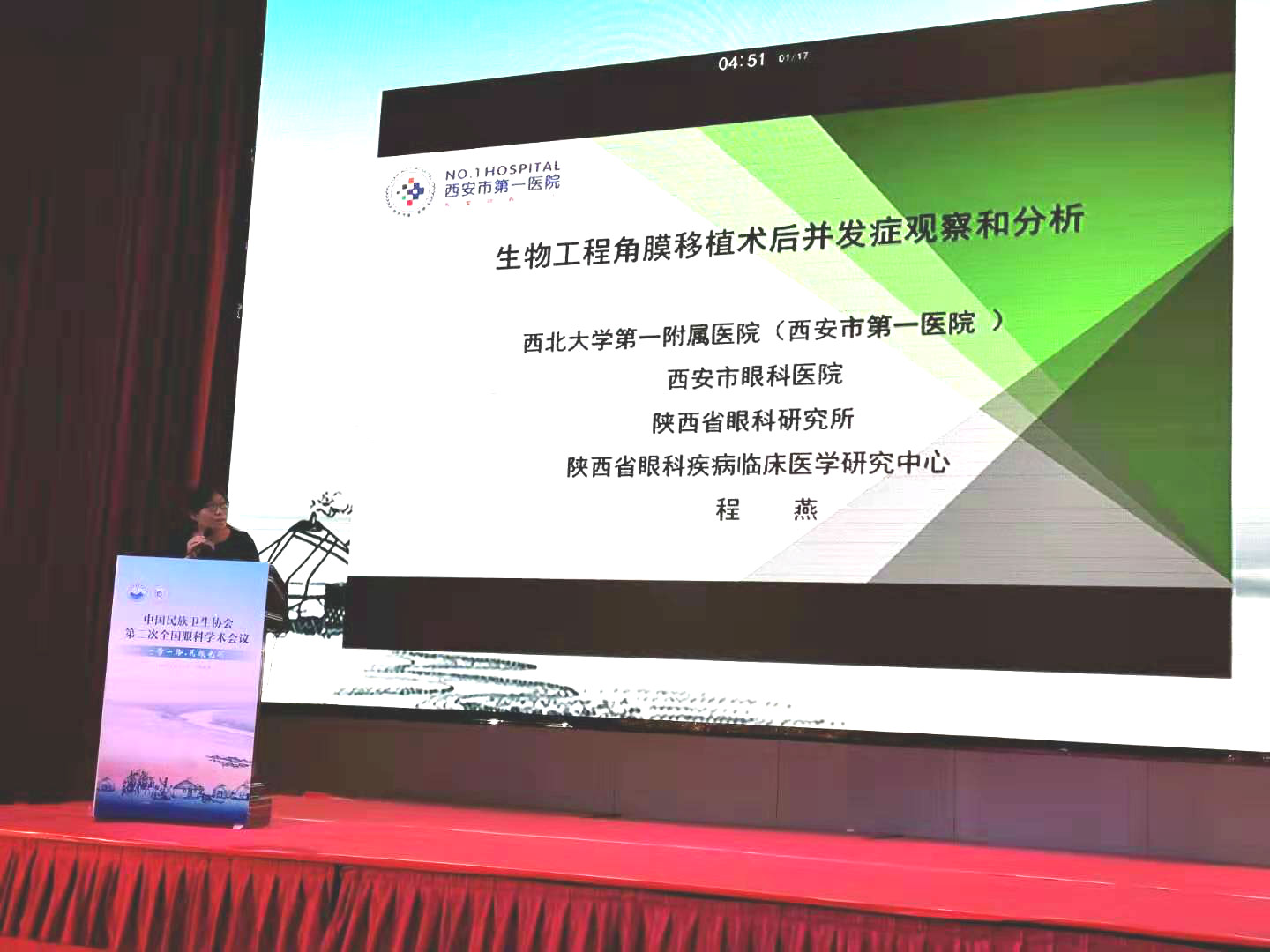 会中,程燕主任代表我院年轻角膜病专家就《生物工程角膜移植术后并发症观察和分析》,陕西省眼科研究所肖湘华副所长就《结膜荧光印迹细胞学和泪眼蕨类试验在干眼病诊断中的应用》分别进行了大会发言。