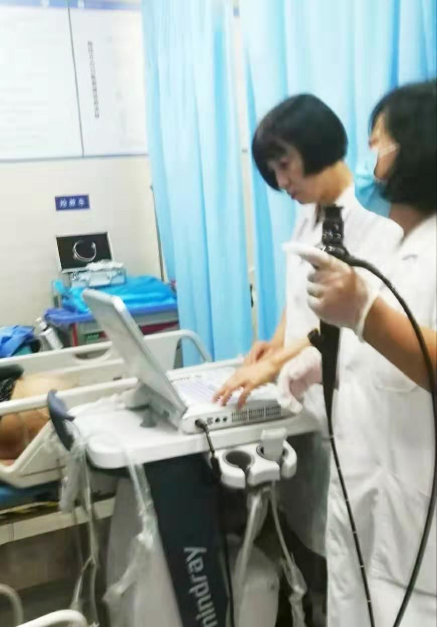 患者白某某,女,54岁,2019年8月19日10时许因“间断抽搐2小时,意识不清10分钟”由家属紧急送人急诊抢救室,查体主动脉搏动消失,瞳孔散大,皮肤黏膜紫绀,医护人员立即开通绿色通道,在郑军梅主任、肖一峰护士长的指挥下,抢救室展开了紧张有序的抢救工作:体外心脏按压仪确保胸外按压质量,可视喉镜气管插管成功,建立人工气道呼吸机控制呼吸,床旁快速检测,床旁超声快速评估心功能和循环,并超声引导下股静脉穿刺置管,中心静脉血流动力学监测,滴定式的药物和液体复苏……抢救20分钟患者主动脉搏动和自主呼吸恢复、血流动力学稳定,复苏成功!患者因肺部感染较重血氧饱和度迟迟不能回升达标,追问病史患者糖尿病肾病多年,近2年因尿毒症反复透析,近2日肺部感染在社区输液治疗,病情逐渐加重,梁敏主任医师立即予以纤支镜肺泡灌洗,并展开脓毒症集束化治疗,半小时后患者血氧饱和度正常,血流动力学稳定,神志清楚,两小时后患者病情相对稳定转入ICU进一步床旁血滤抢救。