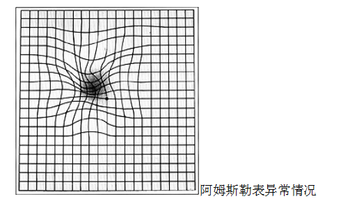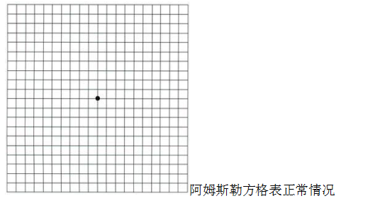 采用阿姆斯勒方格表或者看有线条、栅格的窗框或其他有线条、四方格的器皿,把方格表放在视平线30cm处,光线要明亮及均匀,若有屈光不正或近视需佩镜矫正后进行测试,看线条是否变弯、方格变小或变形、久远有无黑影遮挡等异常情况,若异常应尽快到医院就诊。