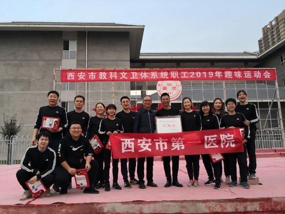 10月31日,由市教科文卫工会组织的2019年职工趣味运动会在西安高级中学举行,我院工会负责人魏东及院工会人员带领12名职工参加。比赛分集体跳大绳、定点投篮接力、齐心协力跑和海底捞月四个项目,我院队员统一服装,充分发挥团结协作精神、奋力拼搏,以友谊第一、比赛第二的精神风貌,比出风格、赛出水平,最终通过努力荣获趣味运动会三等奖。