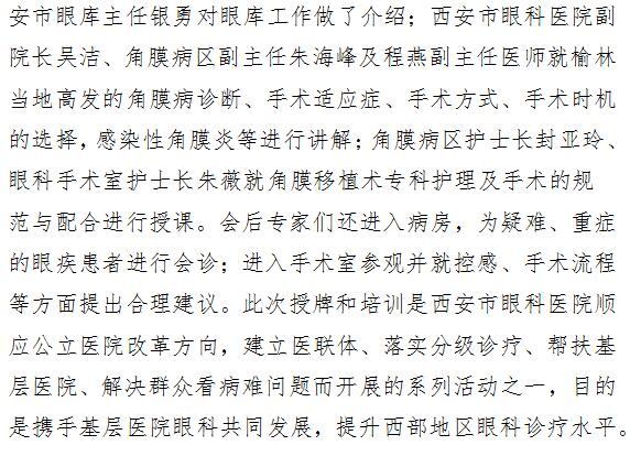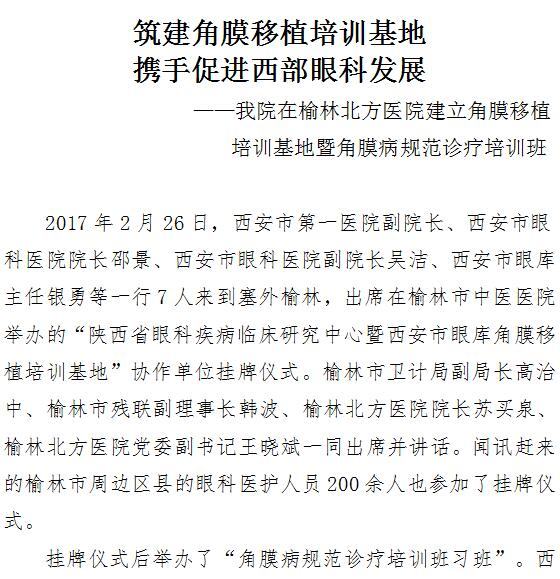 我院在榆林北方医院建立角膜移植培训基地暨角膜病规范诊疗培训班