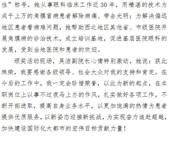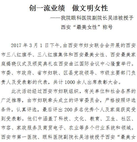 我院眼科医院副院长吴洁被授予西安“最美女性”称号
