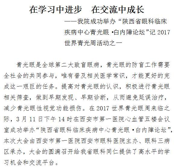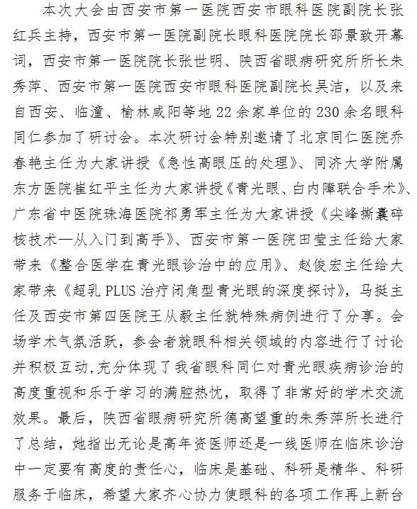 我院成功举办“陕西省眼科临床疾病中心青光眼·白内障论坛”