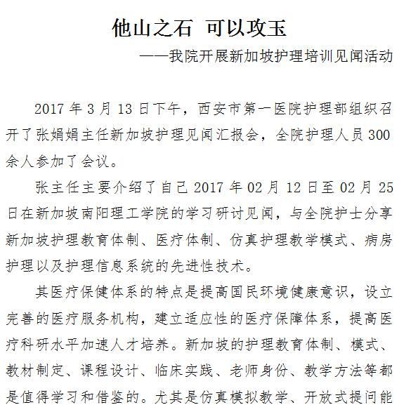 他山之石 可以攻玉 ——我院开展新加坡护理培训见闻活动