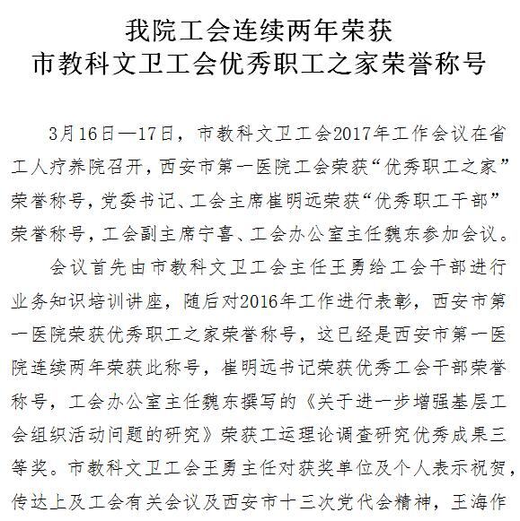 我院工会连续两年获市教科文卫工会优秀职工之家荣誉称号