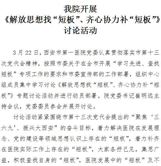 我院开展 《解放思想找“短板”、齐心协力补“短板”》 讨论活动