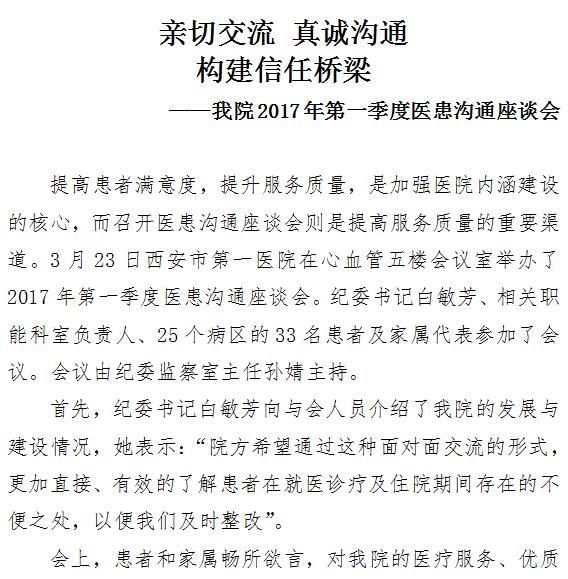 亲切交流 真诚沟通 构建信任桥梁 ——我院2017年第一季度医患沟通座谈会