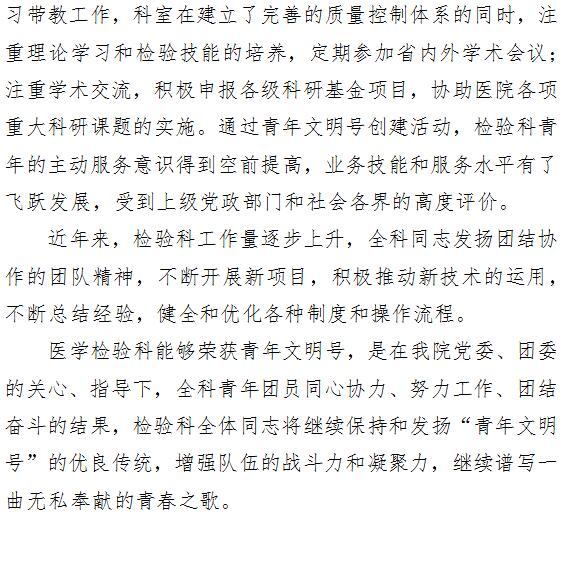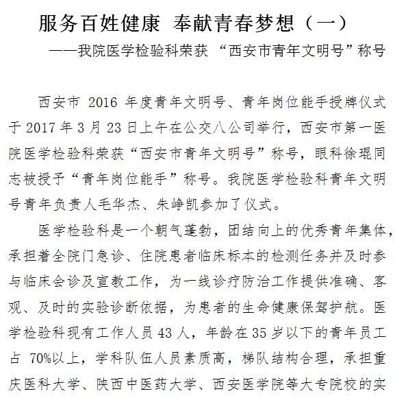 服务百姓健康 奉献青春梦想(一) ——我院医学检验科荣获 “西安市青年文明号”称号