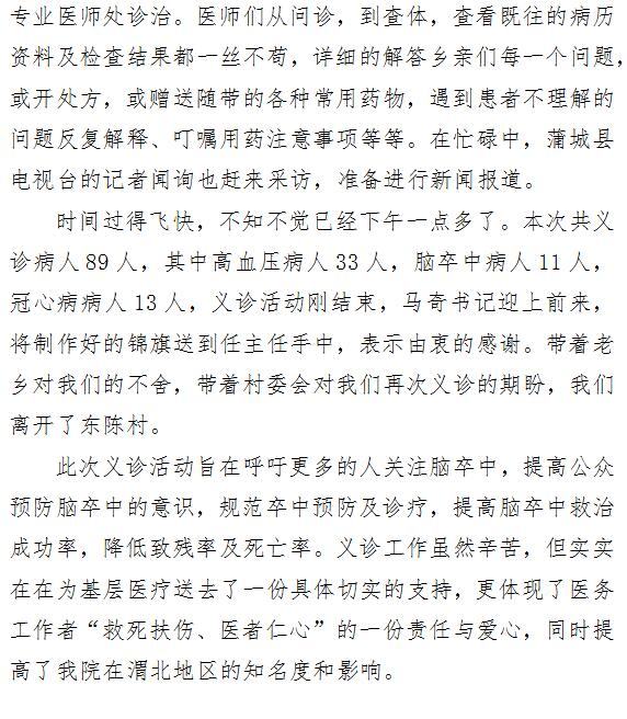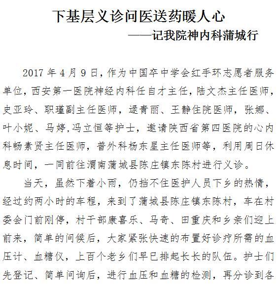 下基层义诊问医送药暖人心 ——记我院神内科蒲城行