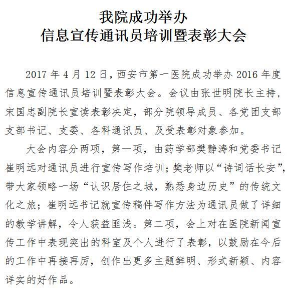 我院成功举办信息宣传通讯员培训暨表彰大会