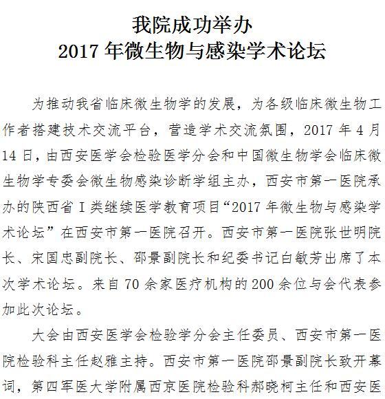 我院成功举办2017年微生物与感染学术论坛