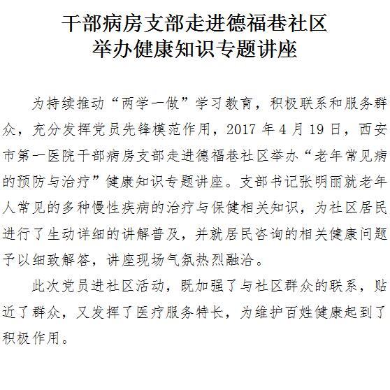干部病房支部走进德福巷社区举办健康知识专题讲座