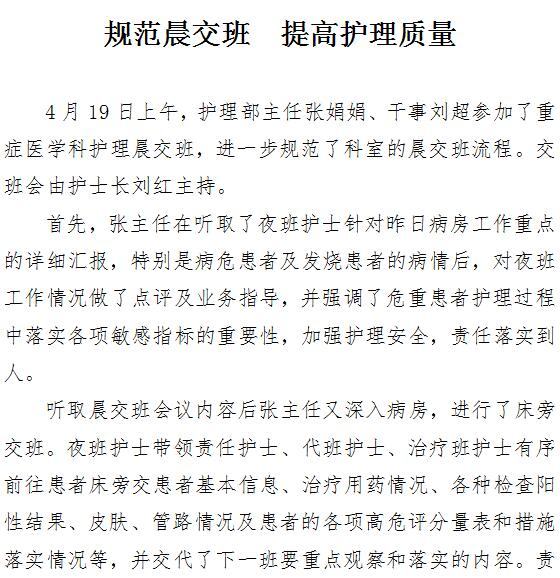 规范晨交班 提高护理质量