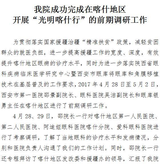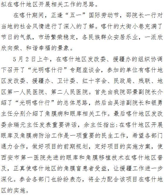 我院成功完成在喀什地区开展“光明喀什行”的前期调研工作